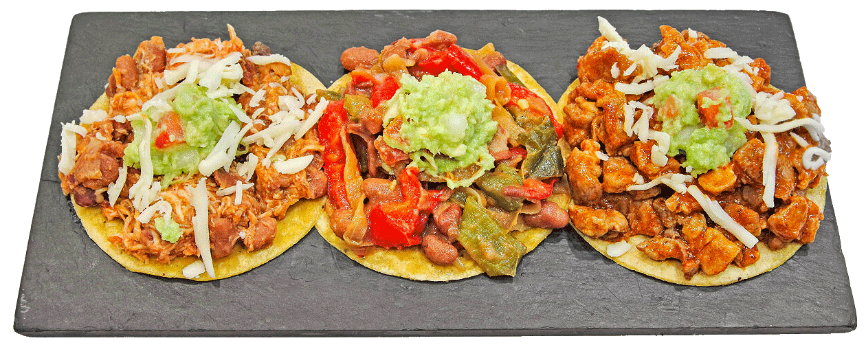 Refrito de tomate marinado, cebolla, todo a la plancha y pechugas de pollo, acompañadas con queso cheddar, sour cream casero, guacamole casero y lechuga 2x1